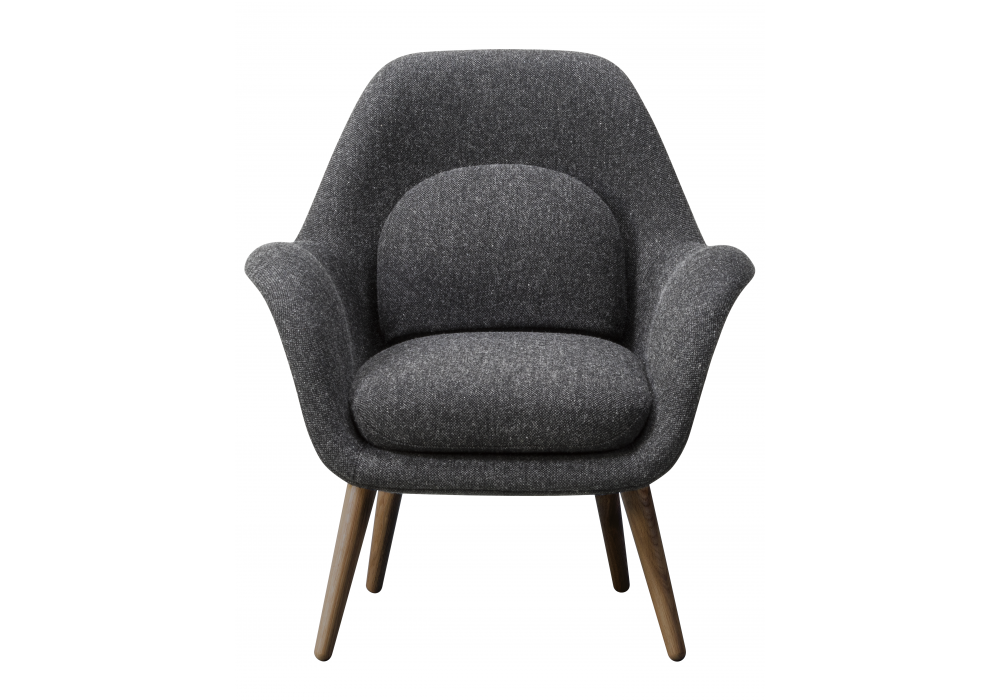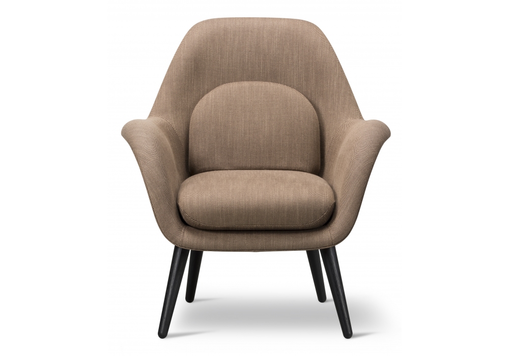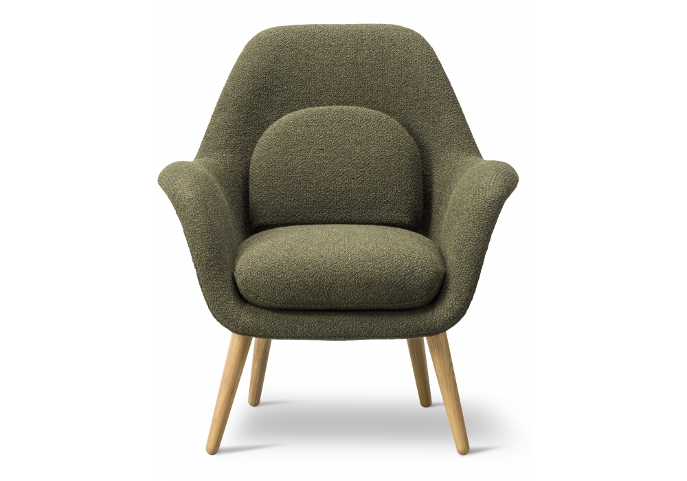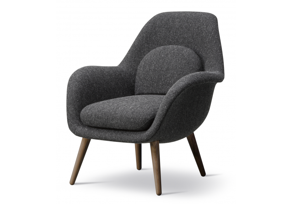 Swoon Lounge Petit conçu par Space Copenhagen pour Fredericia est un fauteuil entièrement rembourré avec pieds en bois massif. Coque interne en mousse polyuréthane moulée sous haute pression, renforcée par une armature en acier. Coussin d'assise et de dossier amovibles en mousse à faibles émissions, avec revêtement amovible. Disponible en tissu ou en cuir.