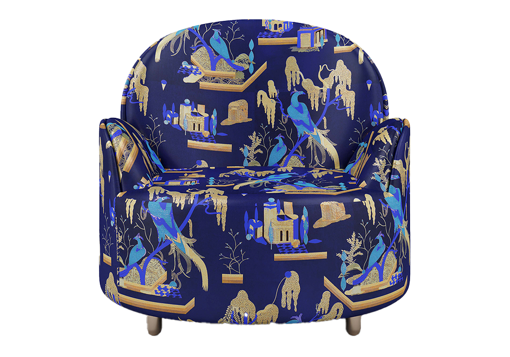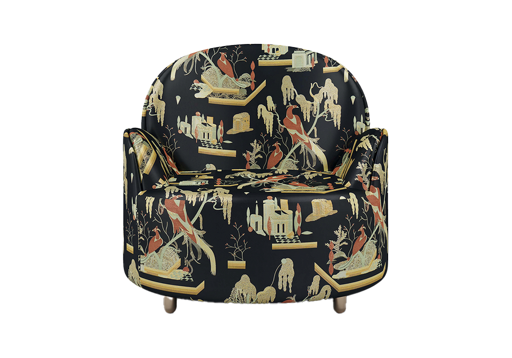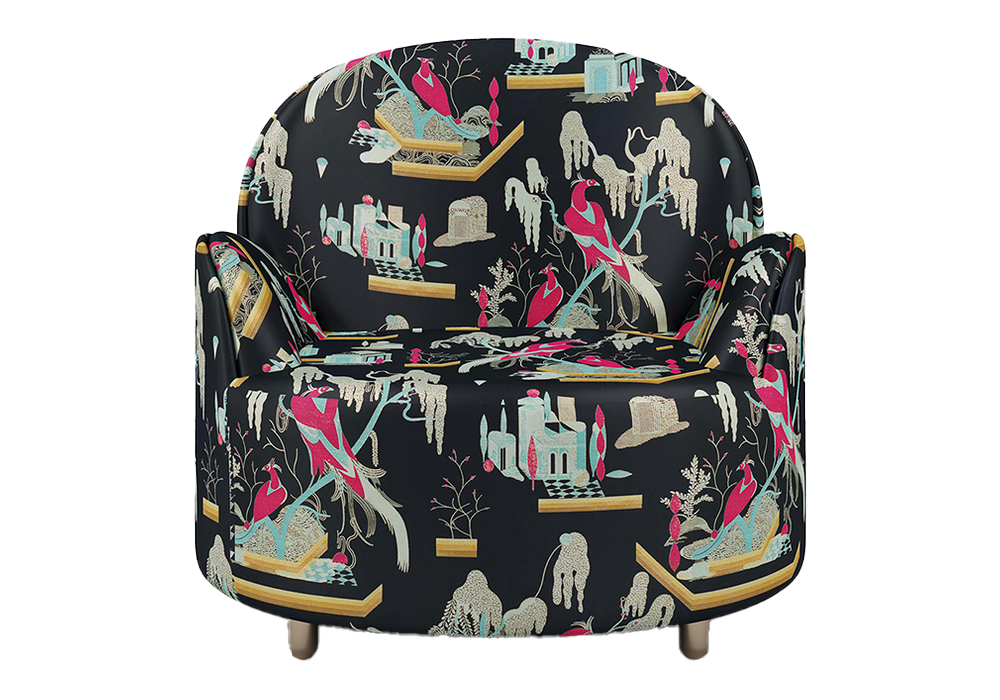 Strings conçu par Nika Zupanc pour Scarlet Splendor est un fauteuil avec structure en mousse et bois. Rembourrage en différents velours.