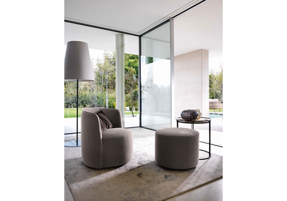 Chloè conçu par Stefano Spessotto & Lorella Agnoletto pour Ditre Italia est un fauteuil avec revêtement en tissu ou cuir, en différentes finitions ou bicolore. Existe aussi en version pivotante. Possibilité d'ajouter le pouf.