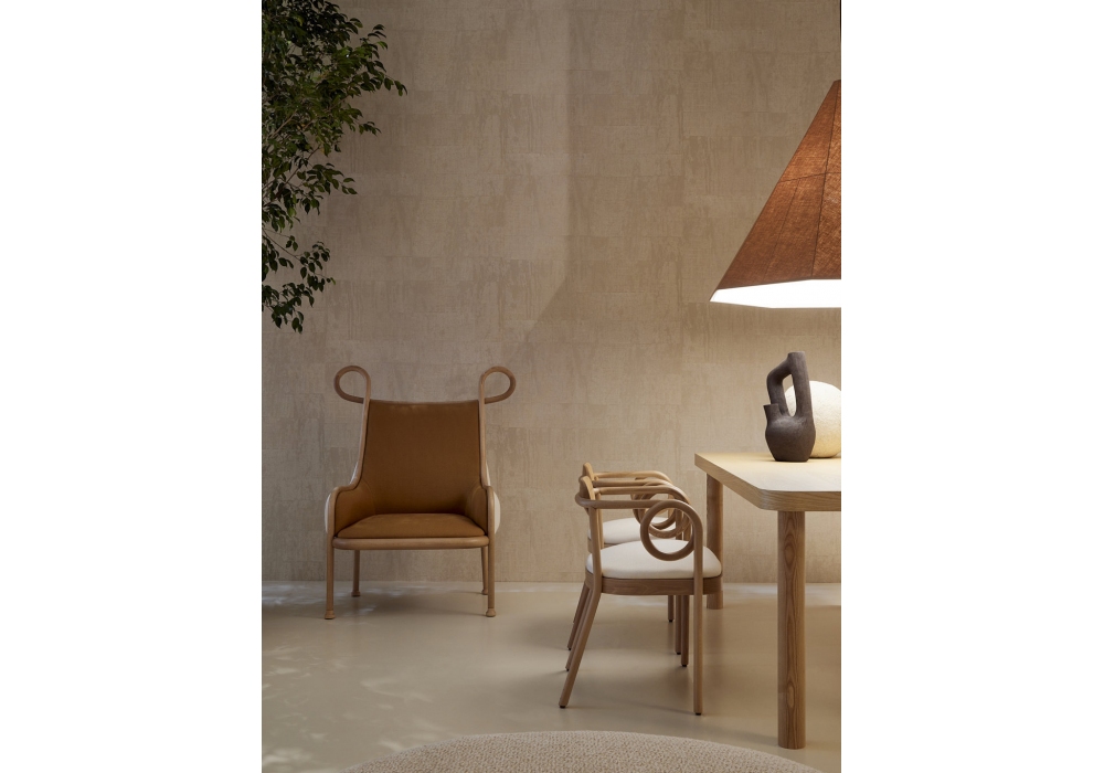 Mickey conçu par India Mahdavi pour Gebrüder Thonet Vienna est un fauteuil lounge avec structure en hêtre courbé. Assise et dossier rembourrés avec revêtement en tissu ou en cuir. Disponible en différentes finitions.