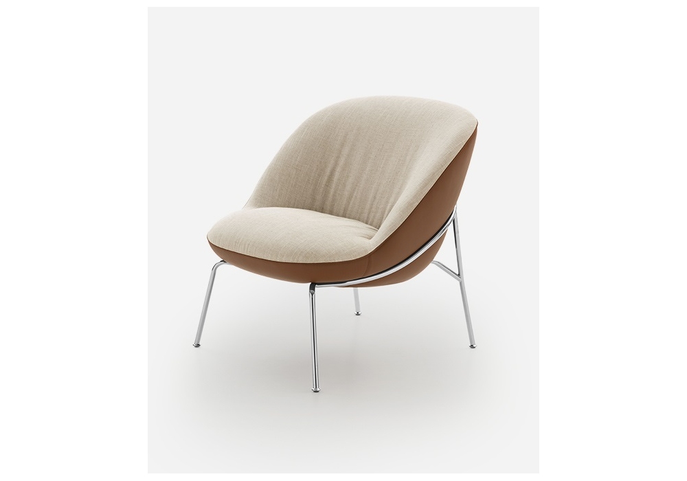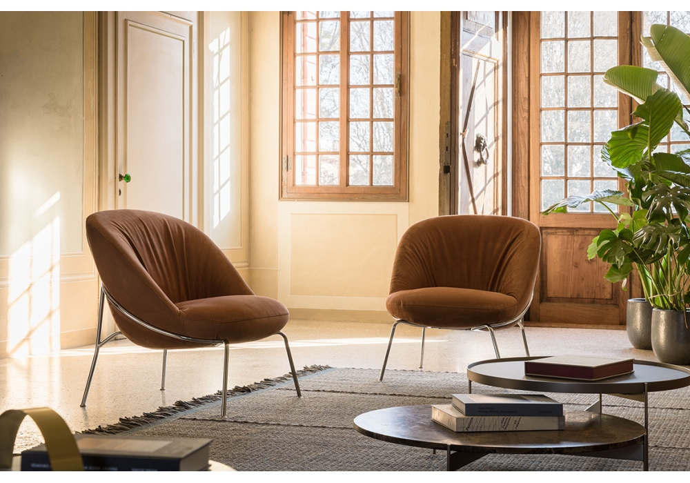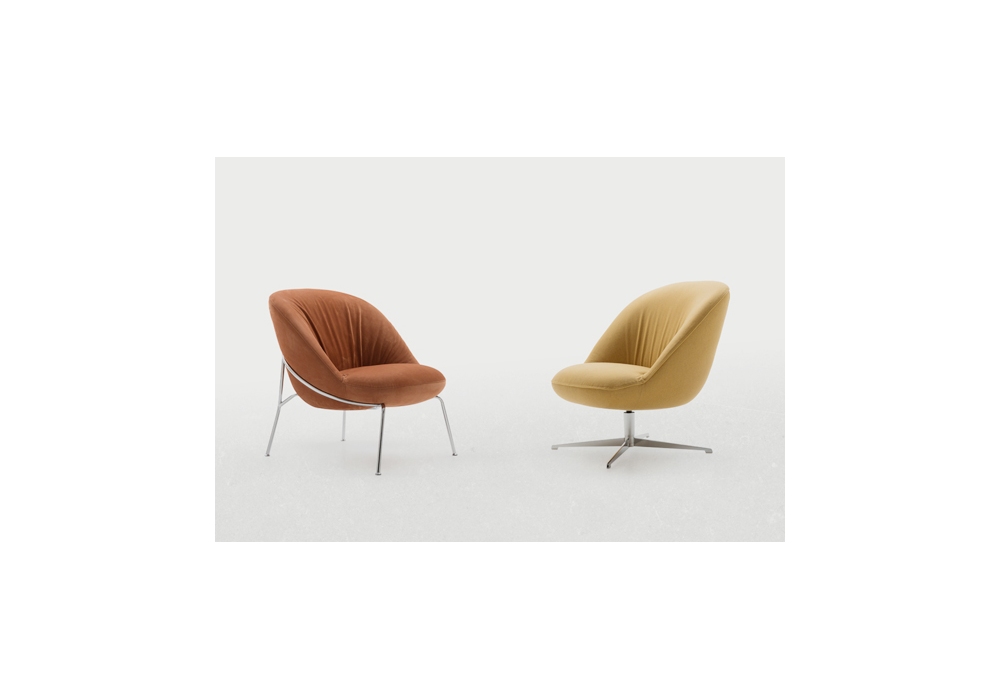 Ella conçu par Pier Luigi Frighetto pour Pianca est un fauteuil réalisé avec une base en métal à 4 pieds ou une base pivotante à 4 rayons. Revêtement en tissu ou cuir.