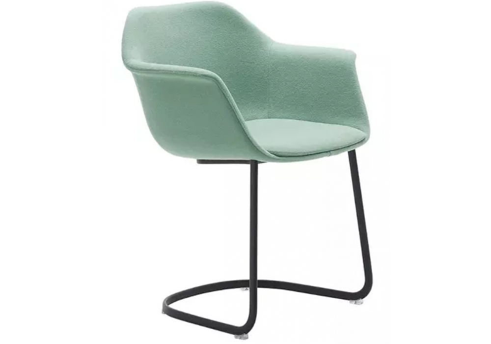 Gala conçu par Piergiorgio Cazzaniga pour Andreu World est un fauteuil avec base en porte-à-faux en acier en différentes finitions. Revêtement en cuir, simili cuir ou tissu.