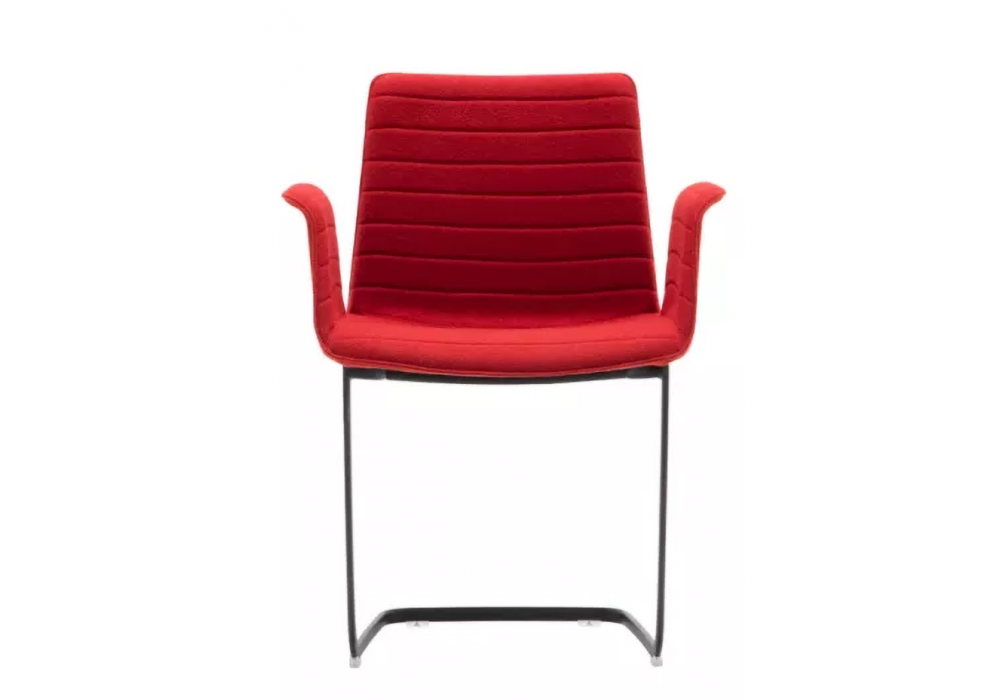 Flex Armchair conçu par Piergiorgio Cazzaniga pour Andreu World est un fauteuil avec base en porte-à-faux en acier, réalisé en différentes finitions. Corps entièrement recouvert de cuir, simili cuir ou tissu.