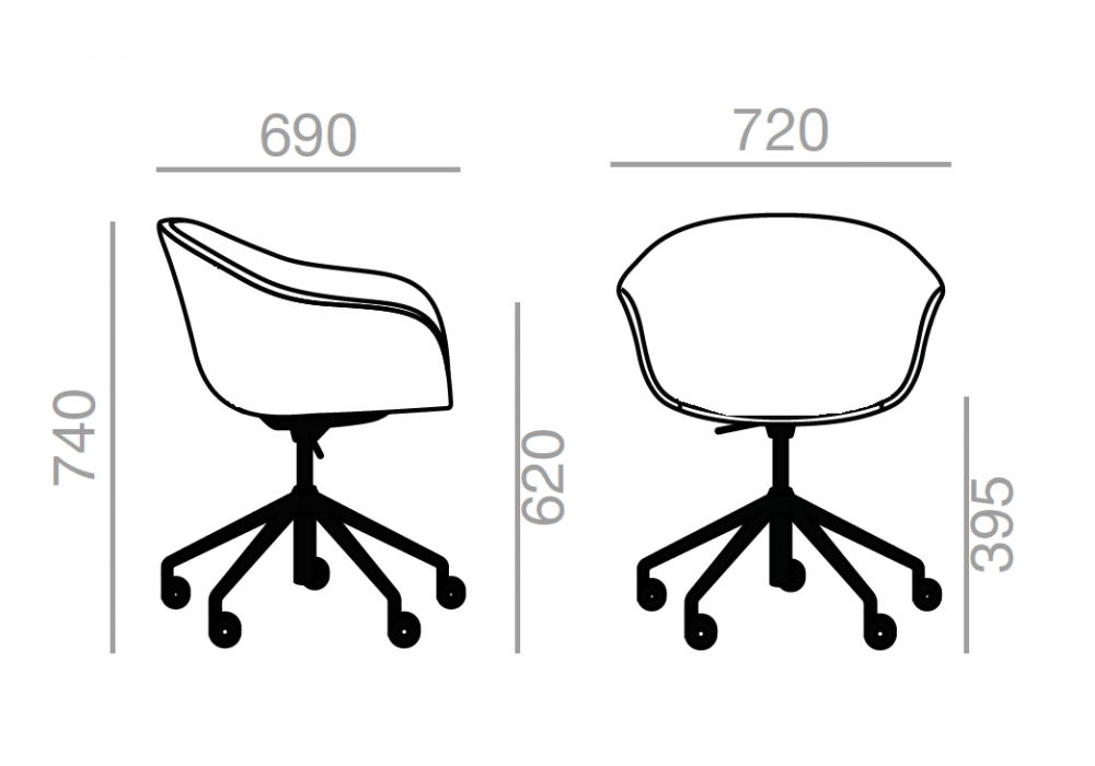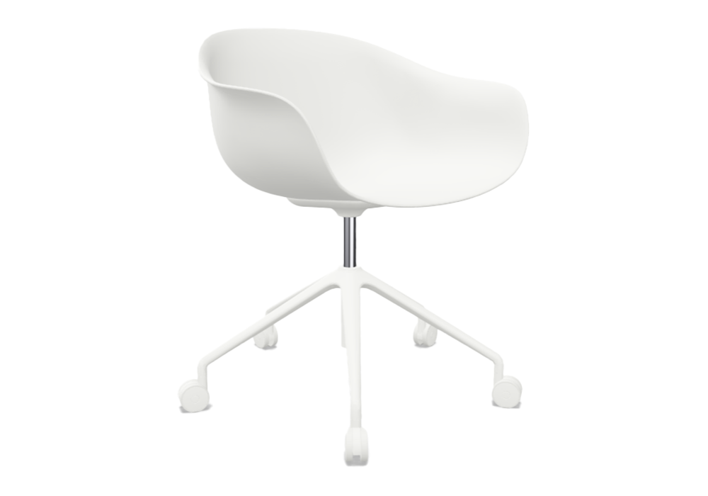 Next conçu par Piergiorgio Cazzaniga pour Andreu World est un fauteuil pivotant avec base en aluminium et coque en Eco thermopolymère en différentes finitions.