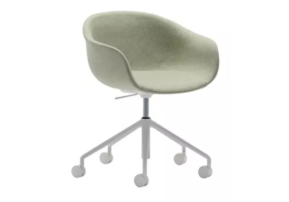 Next conçu par Piergiorgio Cazzaniga pour Andreu World est un fauteuil pivotant avec base centrale en aluminium à 5 roues et équipé d'un réglage pneumatique de la hauteur. Revêtement en différents tissus, cuirs ou simili cuirs.
