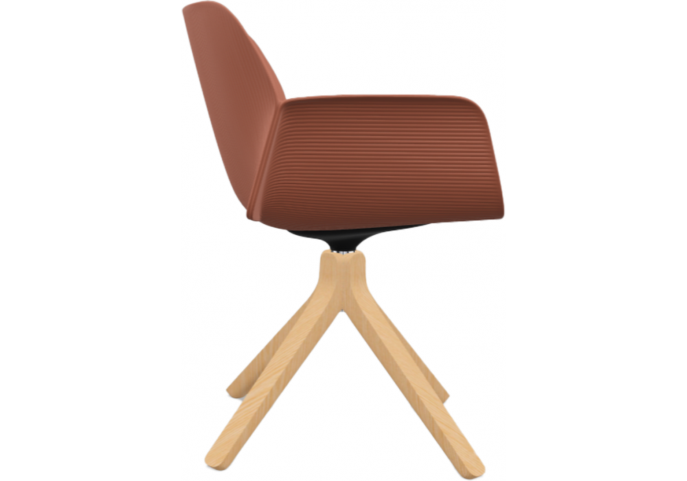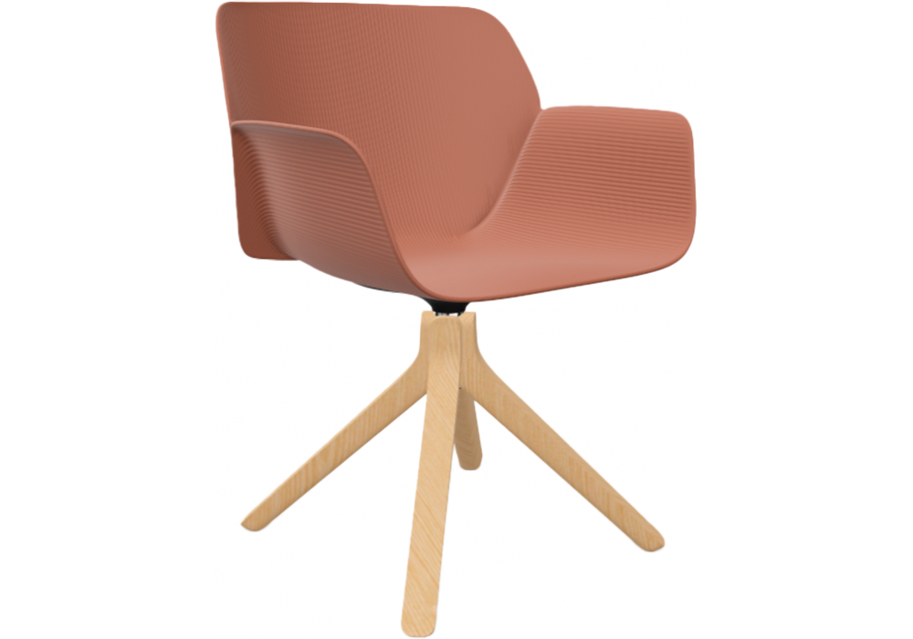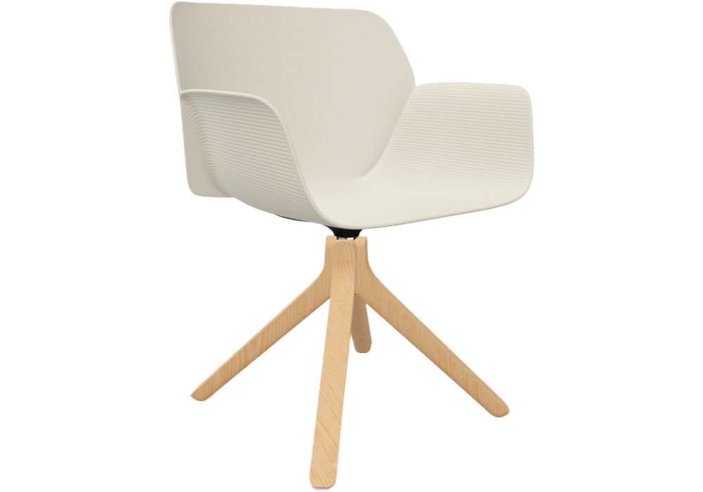 Nuez conçu par Patricia Urquiola pour Andreu World est un fauteuil avec coque en Eco thermopolymère en différentes finitions. Piètement central pivotant en frêne massif à 4 rayons avec système de retour automatique ou 4 pieds.
