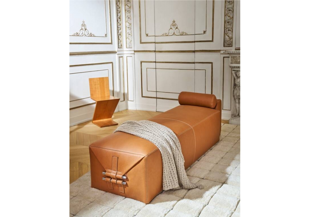 Somewhere El-S conçu par Philippe Starck pour Cassina est un daybed avec ou sans dossier tressé en cuir naturel, assise en tissu Bogolan ou cuir Voyage. Les accoudoirs sont toujours en cuir Voyage avec profil dans la même finition.