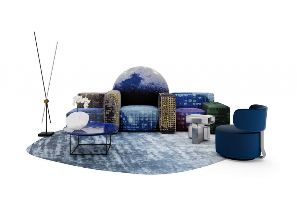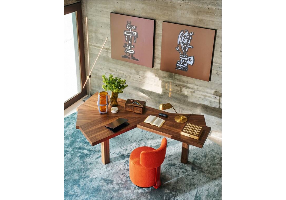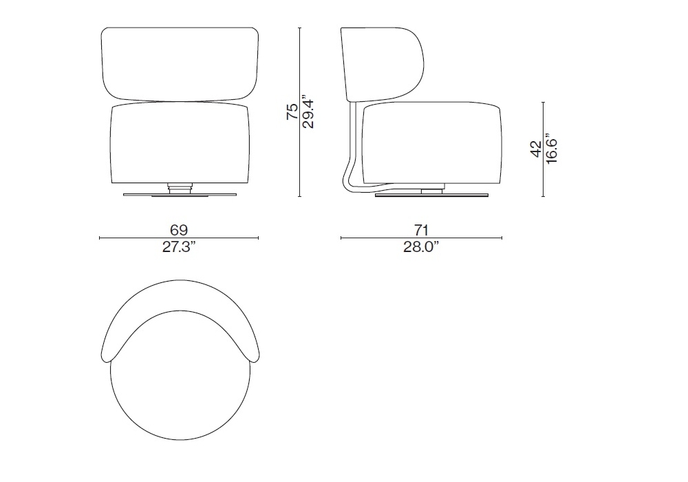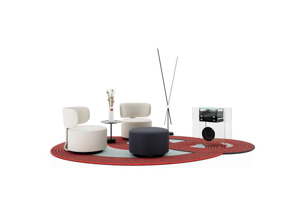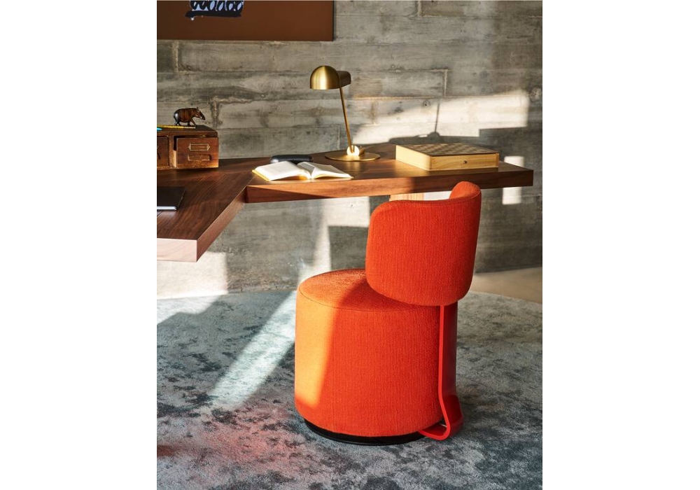 Tamburound conçu par Barber Osgerby pour Cassina est un fauteuil avec support en aluminium, assise et dossier pivotants à mouvement indépendant et revêtement en tissu ou cuir. Également disponible avec support en aluminium recouvert de tissu.
