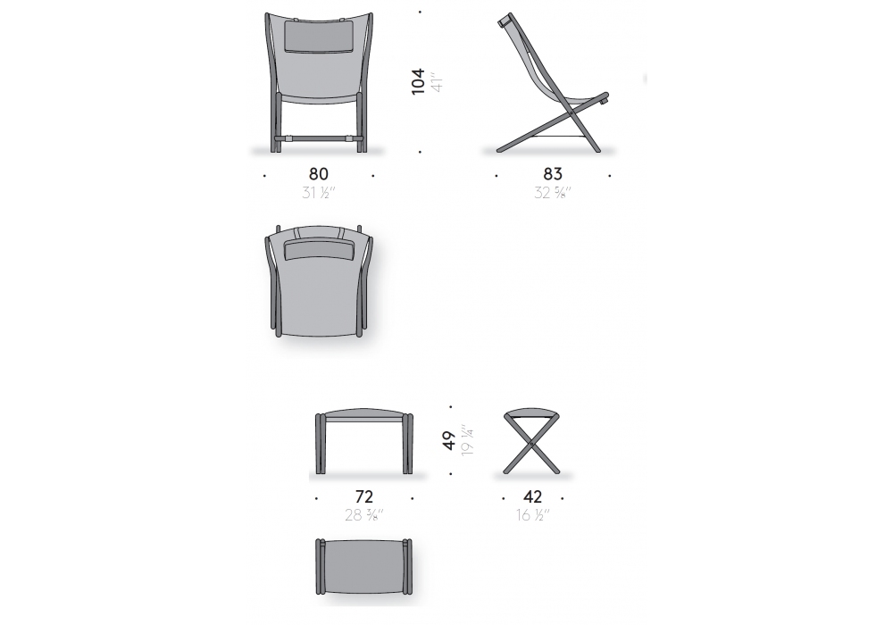 | Dimensions | 80 x 83 x H 104 cm (Poltrona); 72 x 42 x H 49 cm (Poggiapiedi). |