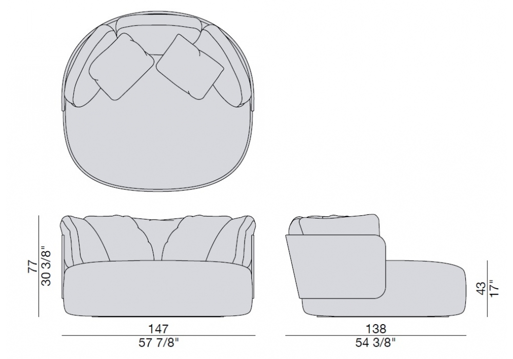 Calin XL conçu par Gabriele & Oscar Buratti pour Porada est un fauteuil avec base métallique fixe ou pivotante et dossier en contreplaqué courbé avec bord visible en finition noyer canaletta. Assise et dossier rembourrés en fibre synthétique avec revêtement amovible. Disponible en différentes finitions.