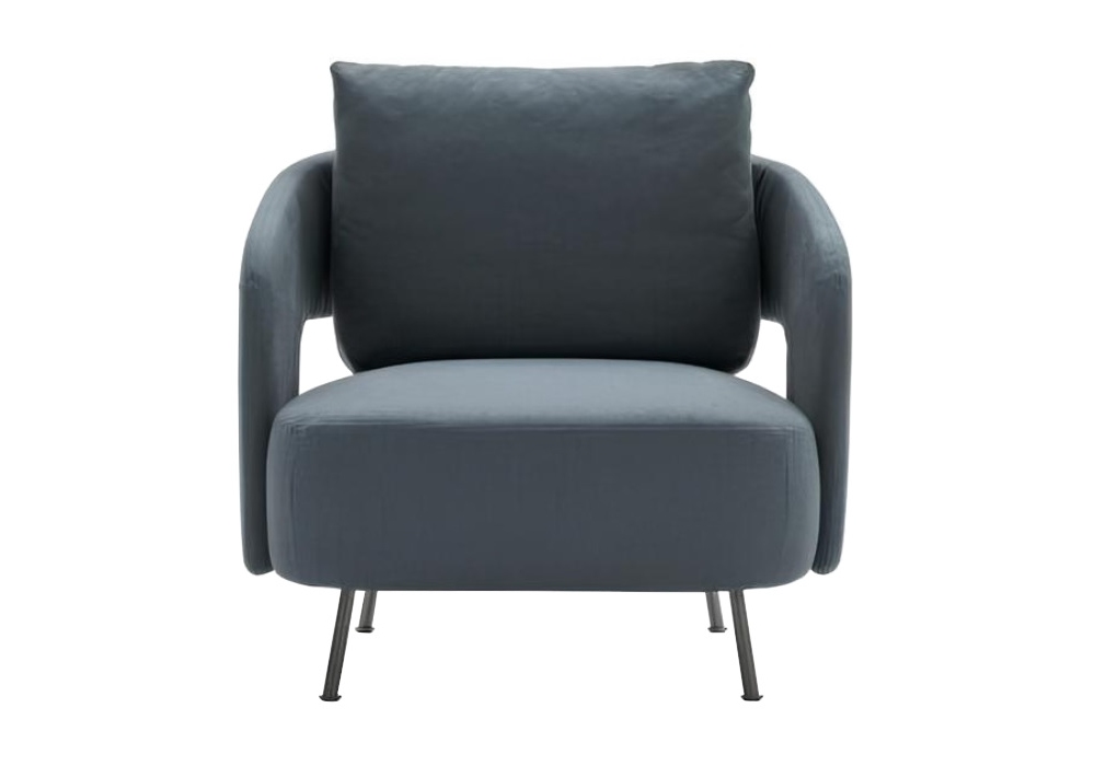356 designed by Daniele Lo Scalzo Moscheri for Ditre Italia is an armchair with structure in fir wood, base in painted metal. Padded seat and backrest with fabric or leather covering. Available in different finishes and versions.
