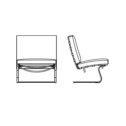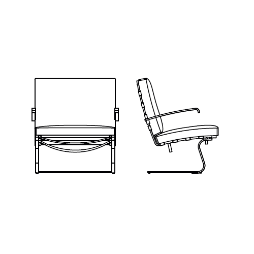 Tugendhat, conçu par Ludwig Mies van der Rohe pour Knoll, est un fauteuil avec structure en acier finition chromée ou peinture époxy onyx ultra-mate. Glissières en plastique noir. Revêtement amovible en tissu ou en cuir avec sangles en cuir sur le dossier. Disponible dans la version avec ou sans accoudoirs
