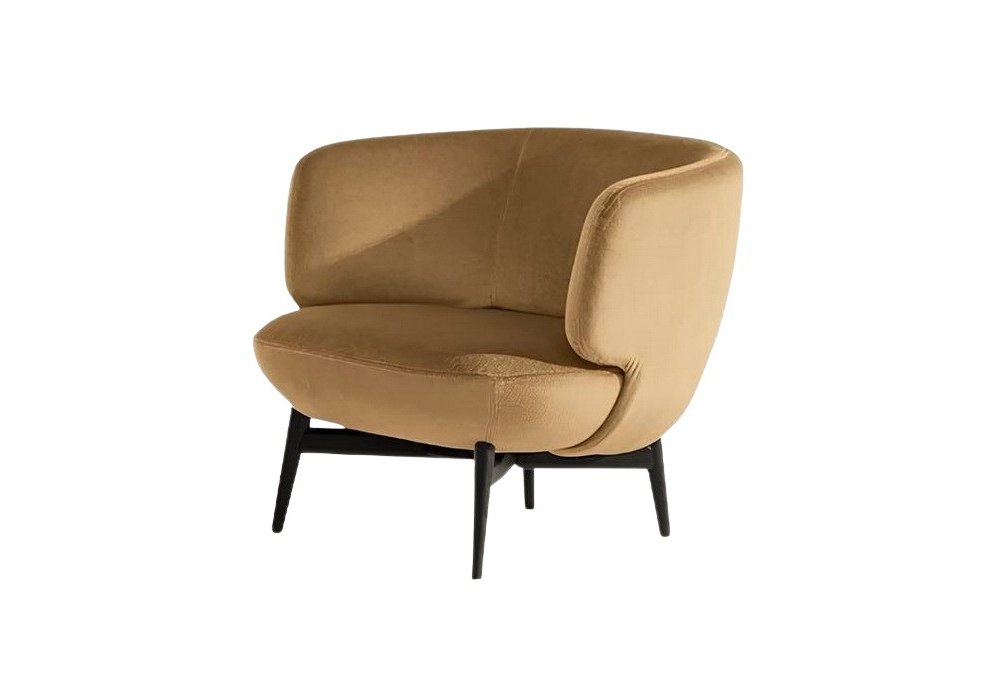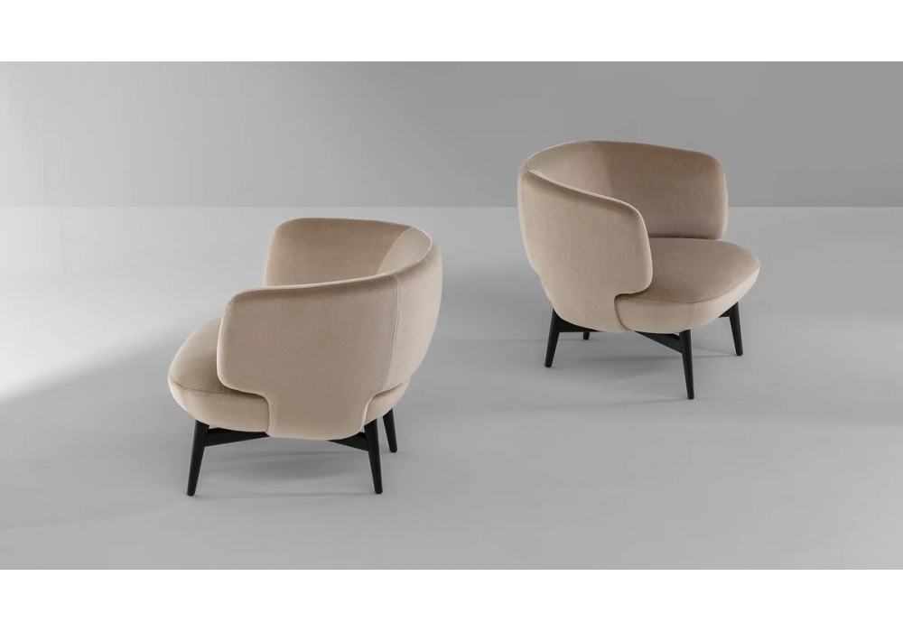 Doge Wood conçu par Mauro Lipparini pour Bonaldo est un fauteuil avec structure interne en métal, base en bois massif, assise et dossier rembourrés recouverts de tissu ou de cuir. Disponible en différentes finitions.