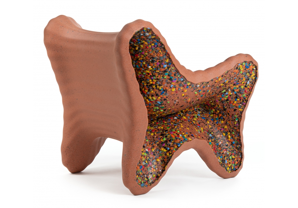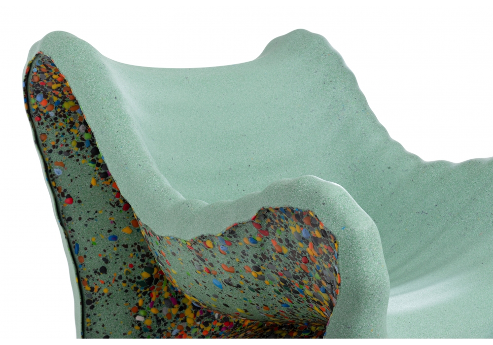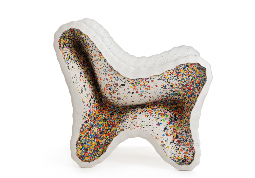 In-Side conçu par Thomas Heatherwick pour Magis est un fauteuil réalisé en polyéthylène, copeaux latéraux multicolores.
