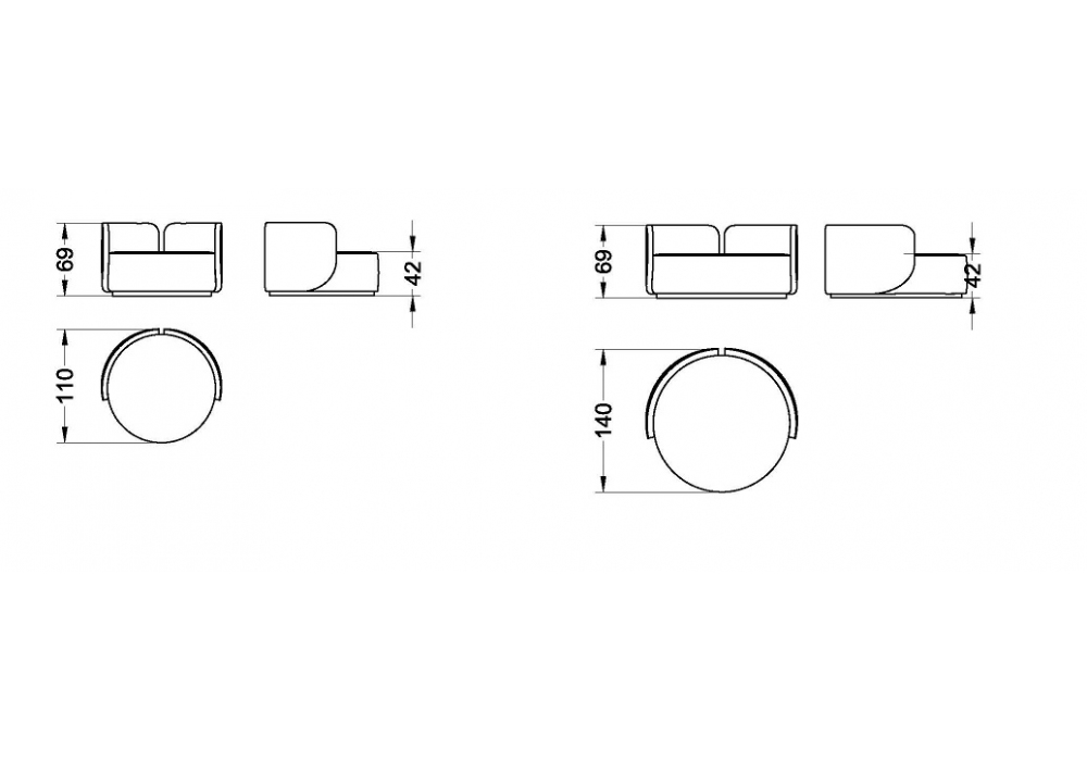 | Dimensions | Ø 110 x H 69 cm; Ø 140 x H 69 cm. |
