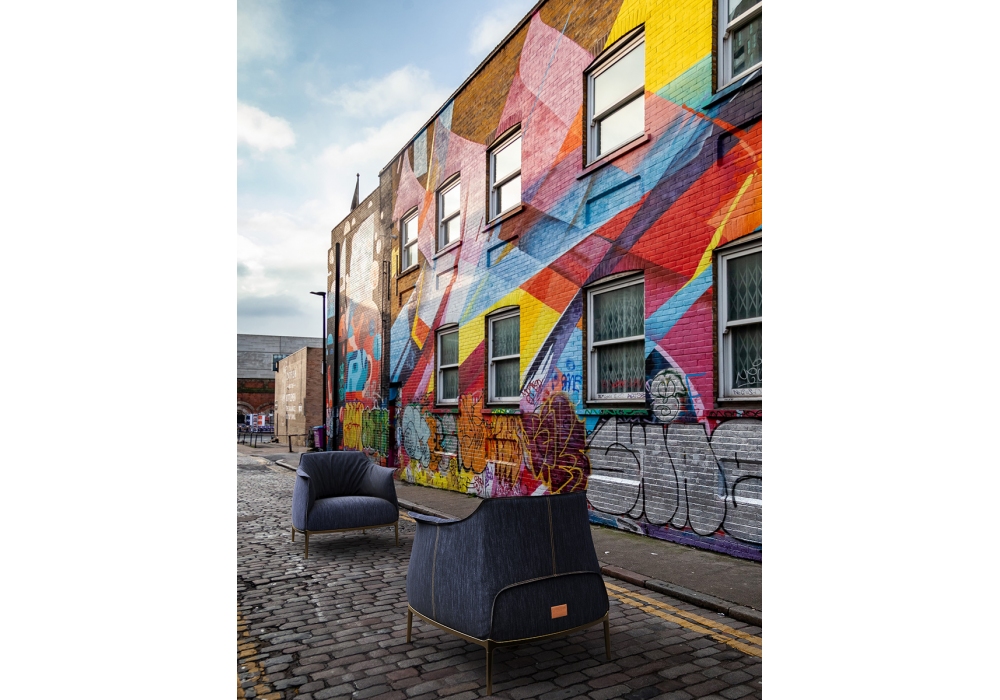 Archibald Denim Edition, conçu par Jean Marie Massaud Poltrona Frau, est un fauteuil réalisé avec un revêtement en tissu jacquard de coton biologique qui présente la structure sergée typique du denim, réalisée avec un lavage spécial qui le rend encore plus résistant et adapté au revêtement de meubles rembourrés. Appelé Ever-Denim, le tissu a une chaîne flammée qui le caractérise, lui donnant un aspect profond et tridimensionnel au toucher et à la vue, avec un toucher vécu inspiré de l'effet « stone washed » du jean et une couleur Navy Blue intense et élégante. Le coton, d'origine naturelle, est certifié GOTS (Global Organic Textile Standard) et peut être nettoyé à sec. Base en bronze vieilli. De plus, le fauteuil est agrémenté d'une étiquette Cuoio Saddle Extra couleur Camel, avec le logo imprimé à chaud et l'inscription « Archibald Denim Edition. Unique, comme vous » cousue au dos. Unique comme toutes les pièces fabriquées à la main par les artisans de Poltrona Frau.