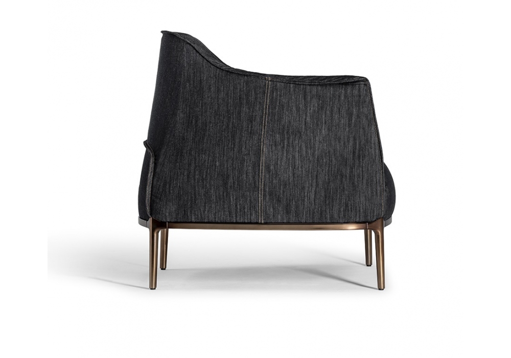 Archibald Denim Edition conçu par Jean Marie Massaud Poltrona Frau est un fauteuil réalisé avec un revêtement en tissu jacquard de coton biologique qui présente la structure sergée typique du denim, réalisée avec un lavage spécial qui le rend encore plus résistant et adapté au revêtement de meubles rembourrés. Le coton, d'origine naturelle, est certifié GOTS (Global Organic Textile Standard) et peut être nettoyé à sec. Base en bronze vieilli. De plus, le fauteuil est agrémenté d'une étiquette Cuoio Saddle Extra couleur Camel, avec le logo imprimé à chaud et l'inscription « Archibald Denim Edition. Unique, comme vous » cousue au dos. Unique comme toutes les pièces fabriquées à la main par les artisans de Poltrona Frau.