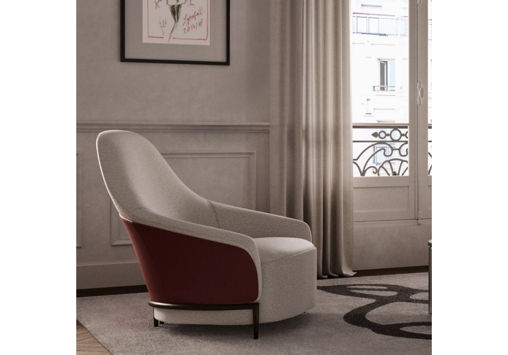 Saint-Guillaume, conçu par Matteo Nunziati pour Karl Lagerfeld Maison, est un fauteuil. La coque et le revêtement avant peuvent être réalisés dans différents tissus. La structure inférieure est en bois et peut être commandée dans les finitions suivantes : noyer américain mat, chêne teinté foncé, chêne teinté gris mat, bambou noir café mat.