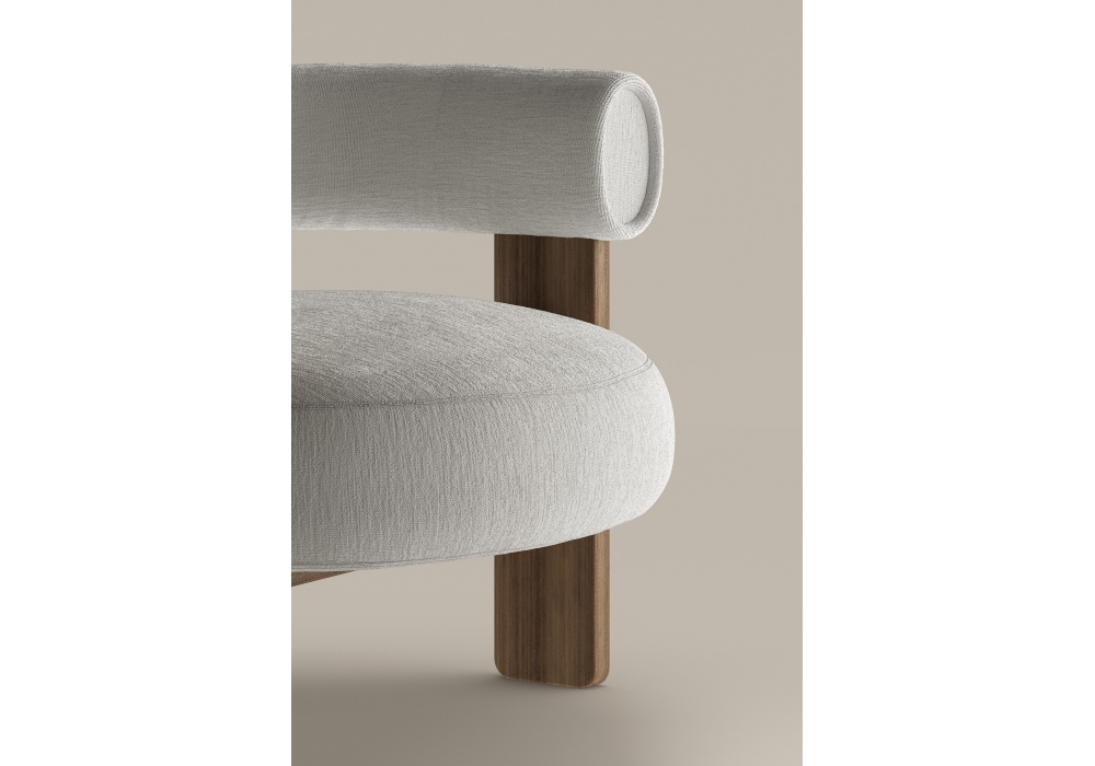 Bull conçu par Gabriele et Oscar Buratti pour Bonaldo est un fauteuil revêtu de différents tissus ou cuirs non déhoussables. Structure en noyer américain massif ou en chêne carbone.
