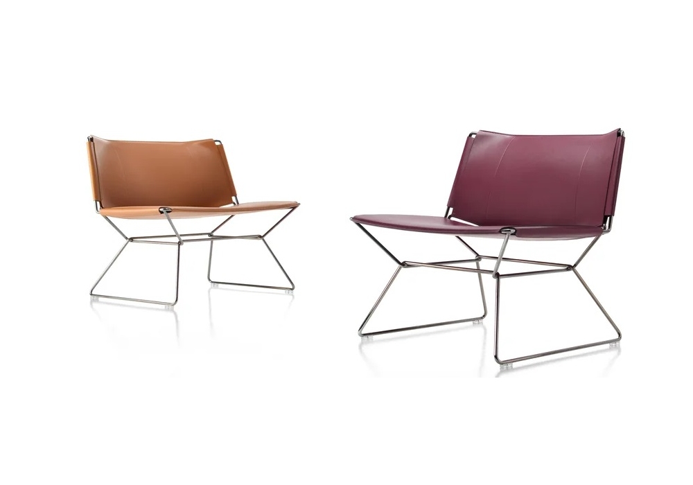 Neil Leather conçu par Jean Marie Massaud pour MDF Italia est un fauteuil avec une structure chromée noire et un revêtement en différentes finitions de cuir.