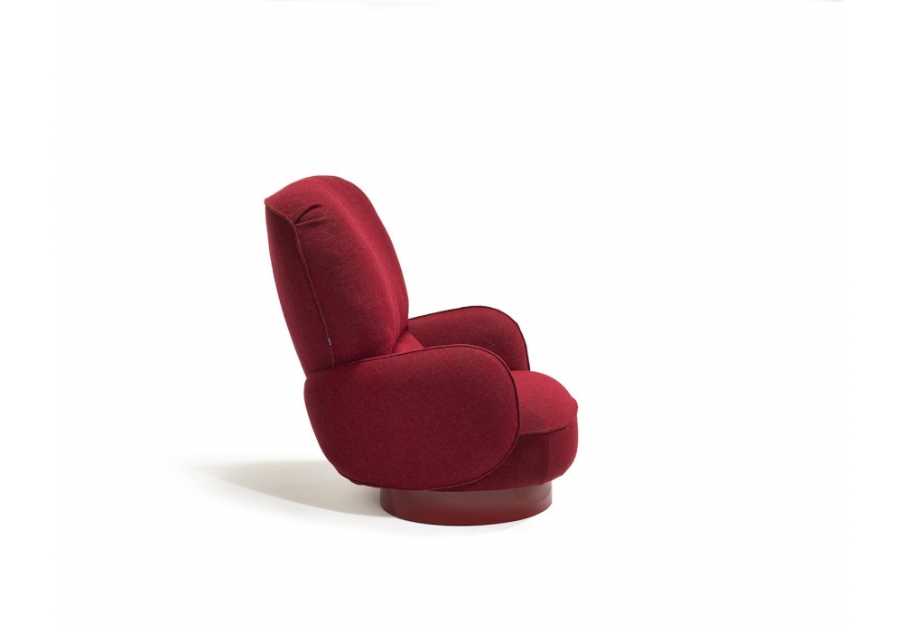 853 Yori-Kiri conçu par Francesca Lanzavecchia pour Zanotta est un fauteuil avec base pivotante peinte brillante, structure en acier, rembourrage en mousse de polyuréthane auto-extinguible avec polyols d'origine végétale. Le coussin de dossier est en fibres de PET recyclées. Le revêtement en tissu est déhoussable. Le fauteuil est équipé d'un mécanisme synchronisé intégré et réglable, dissimulé à l'intérieur de l'assise, qui permet au dossier d'osciller ou de se bloquer dans n'importe quelle position.