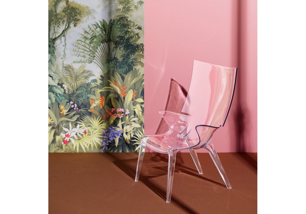 Uncle Jim conçu par Philippe Starck pour Kartell est un fauteuil en polycarbonate transparent ou teinté dans la masse et traitement effet soft touch.