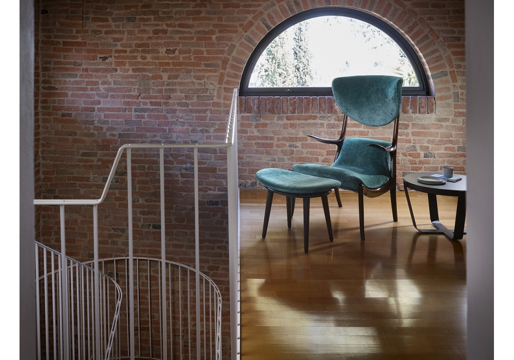 Star Trek by Ceccotti Collezioni is an armchair made in solid American walnut, seat and head-rest in upholstered curved plywood.