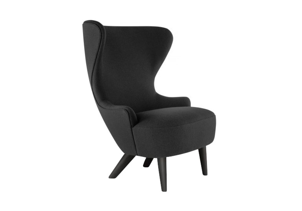 Wingback Chair conçu par Tom Dixon est un fauteuil réalisé avec des pieds en chêne noir et un revêtement en tissu en différentes finitions. Disponible en deux dimensions.