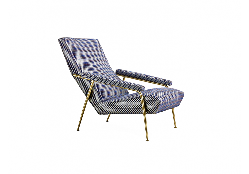 D.153.1 conçu par Gio Ponti pour Molteni&C est un fauteuil réalisé avec structure en laiton satiné et revêtement en cuir, tissu, bicolore ou à pois.