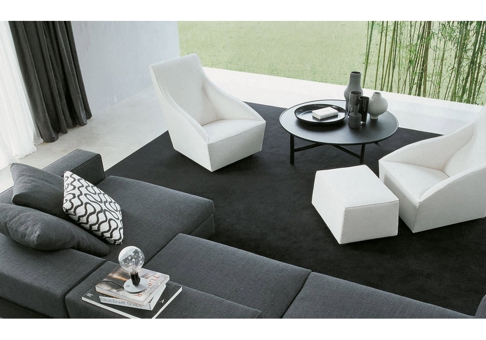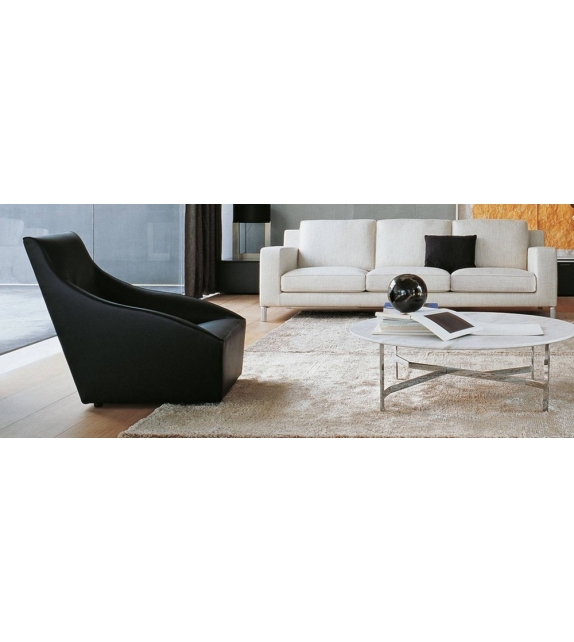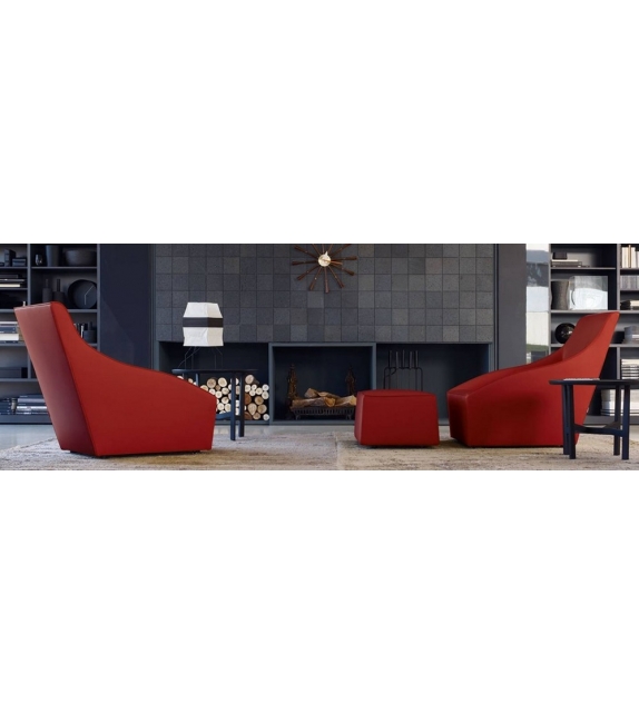 Doda conçu par Ferruccio Laviani pour Molteni&C est un fauteuil avec dossier haut. Fabriqué avec un rembourrage flexible en polyuréthane expansé à froid et un revêtement en tissu ou en cuir. Base fixe ou pivotante en acier peint en noir.