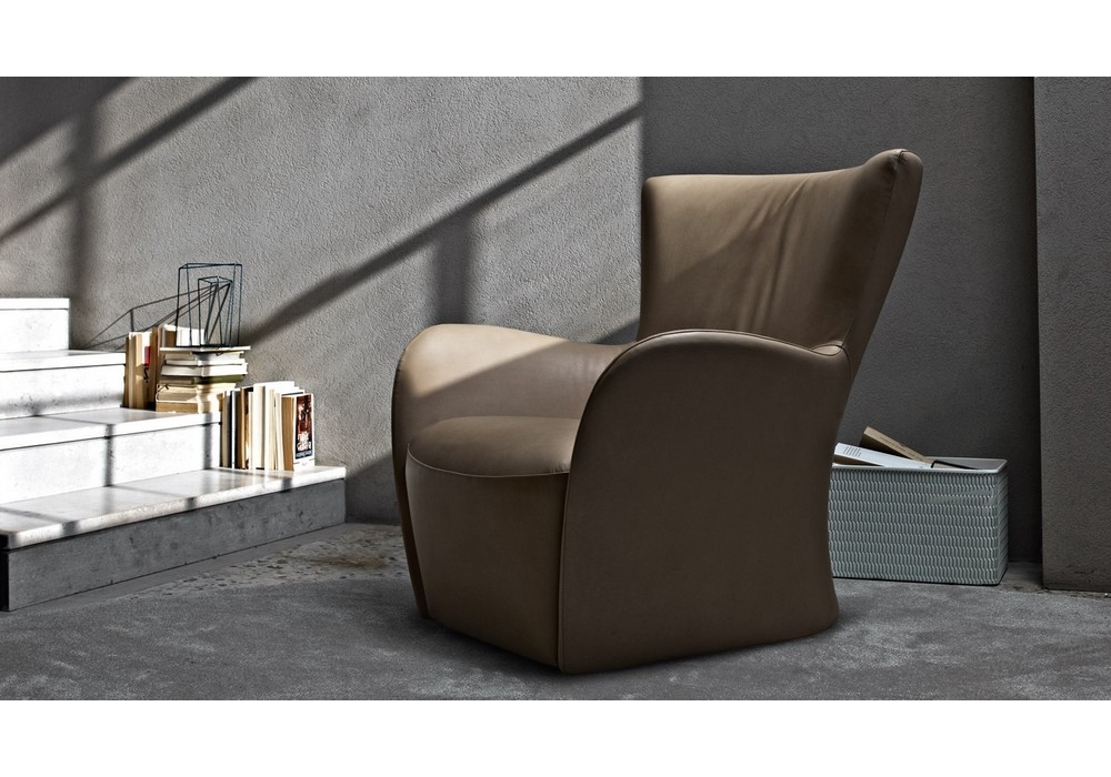 Mandrague conçu par Ferruccio Laviani pour Molteni&C est un fauteuil fixe ou pivotant réalisé avec un revêtement en tissu ou en cuir.