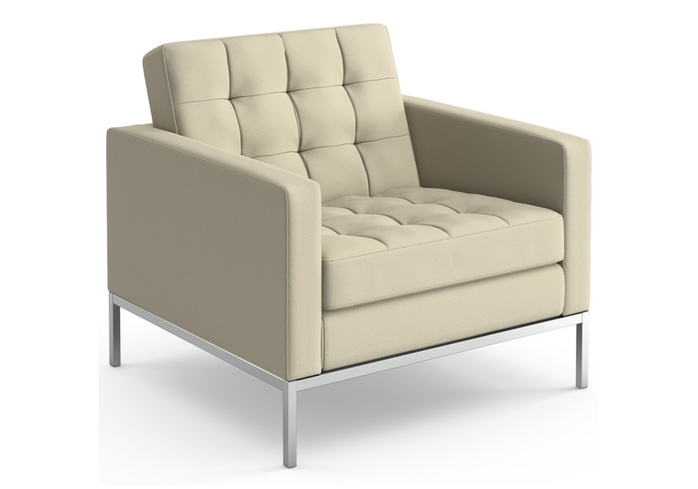 Florence conçue par Florence Knoll pour Knoll est une longue chair avec une structure en tube d'acier à section carrée avec finition chromée polie ou peinte. Les coussins d'assise et de dossier contiennent de la mousse moulée de différentes densités et doublée de fibres de polyester pour augmenter le confort. Les coussins sont matelassés avec des coutures carrées. Les coussins d'assise et de dossier en cuir ont des carrés matelassés avec des boutons tandis que ceux en tissu ont des carrés matelassés sans boutons. Revêtement en tissu ou en cuir.