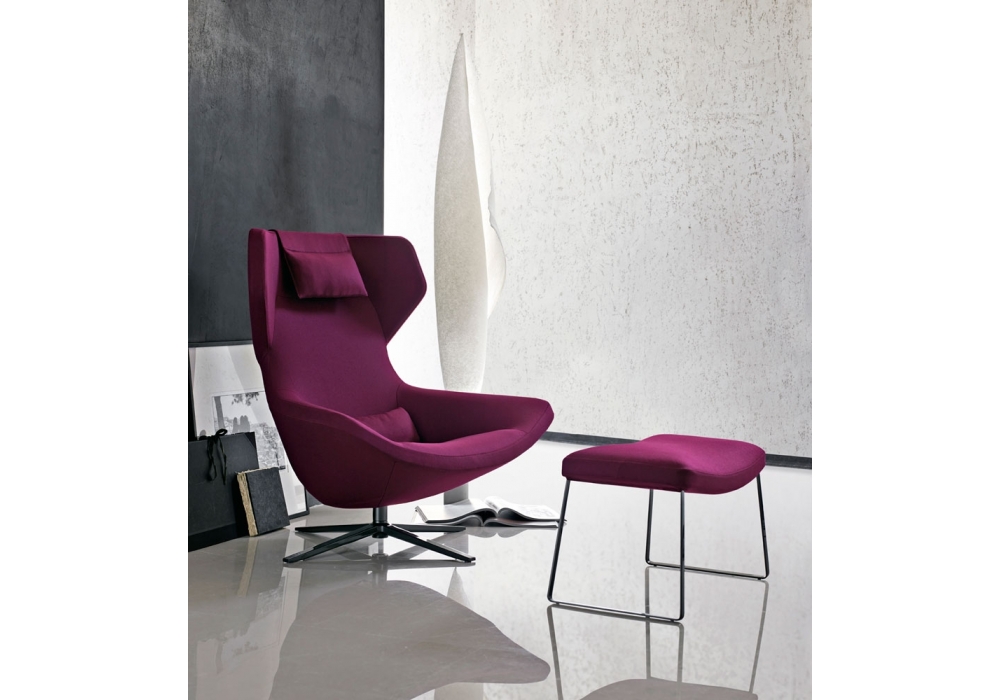 Metropolitan '14 conçu par Jeffrey Bernett pour B&B Italia est un fauteuil à dossier haut avec une structure en aluminium poli ou peint et un revêtement en différents tissus ou cuirs.