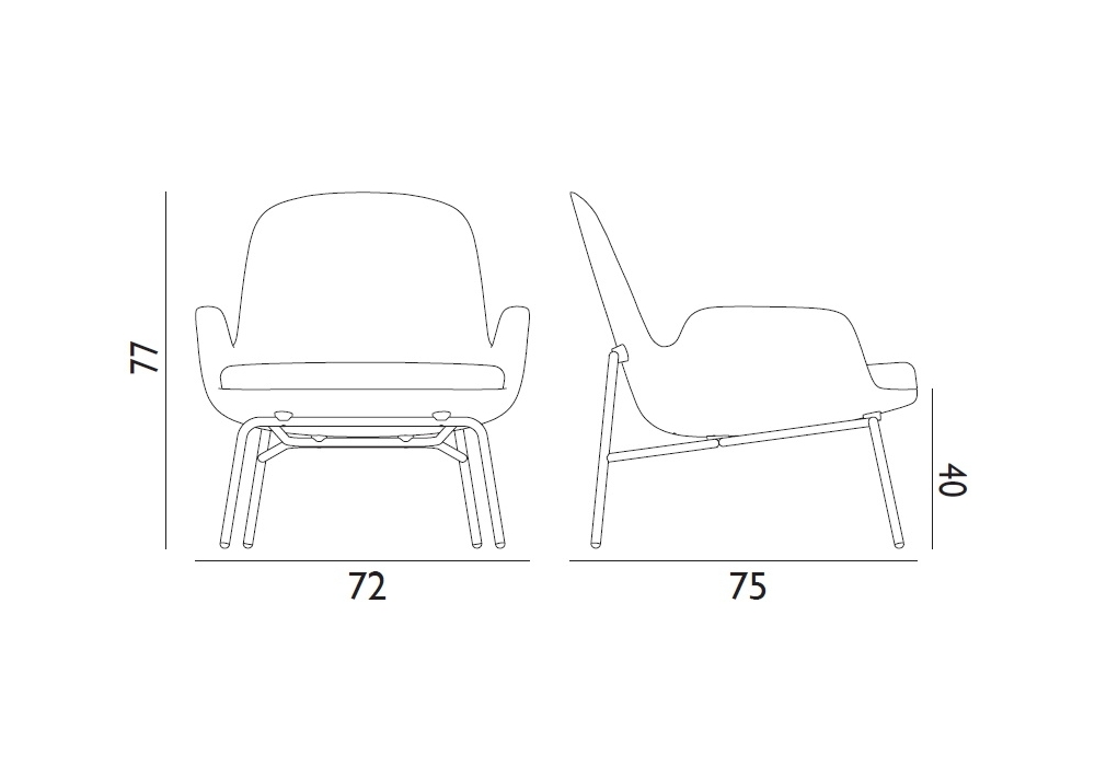 Era, conçu par Simon Legald pour Normann Copenhagen est un fauteuil avec structure porteuse en tube d'acier peint par poudrage. Le dossier, l'assise et les accoudoirs sont en mousse de polyuréthane profilée, recouverts de divers types de tissus ou de cuir. Era est disponible en différentes finitions.