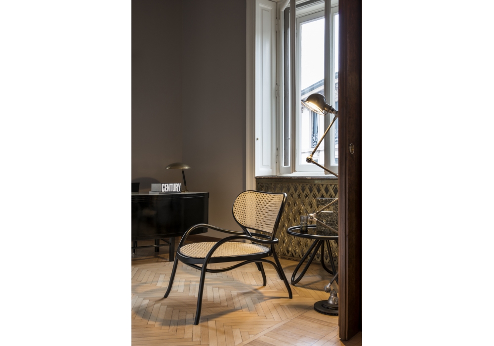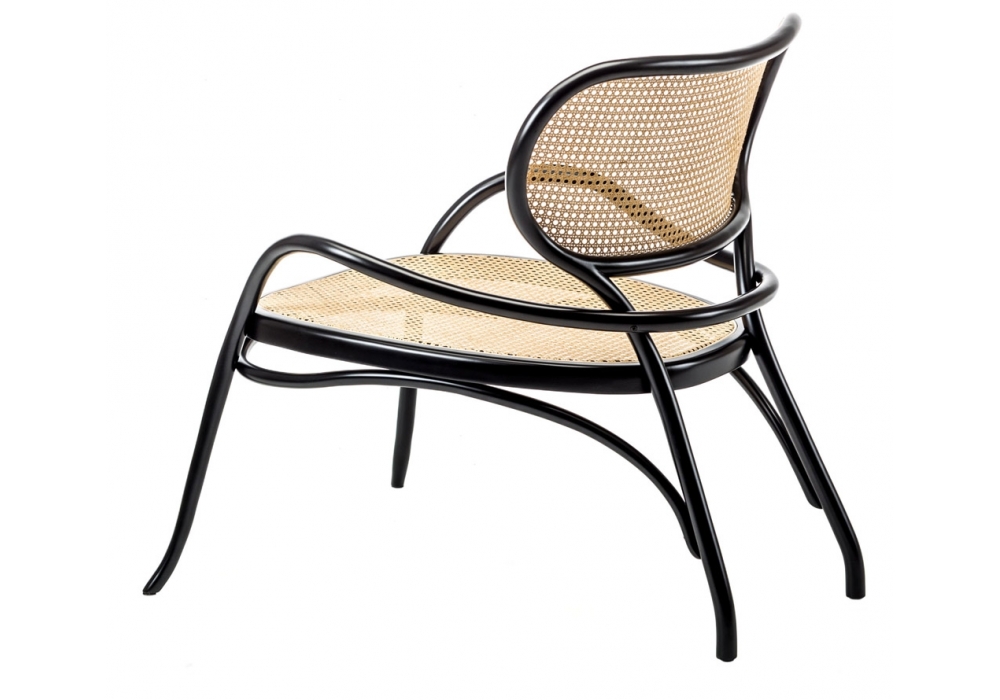 Lehnstuhl conçue par Nigel Coates pour Gebrüder Thonet Vienna est une chaise longue en hêtre courbé. Assise et dossier en paille de Vienne avec une large maille.