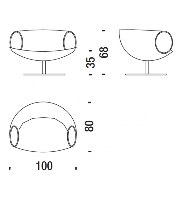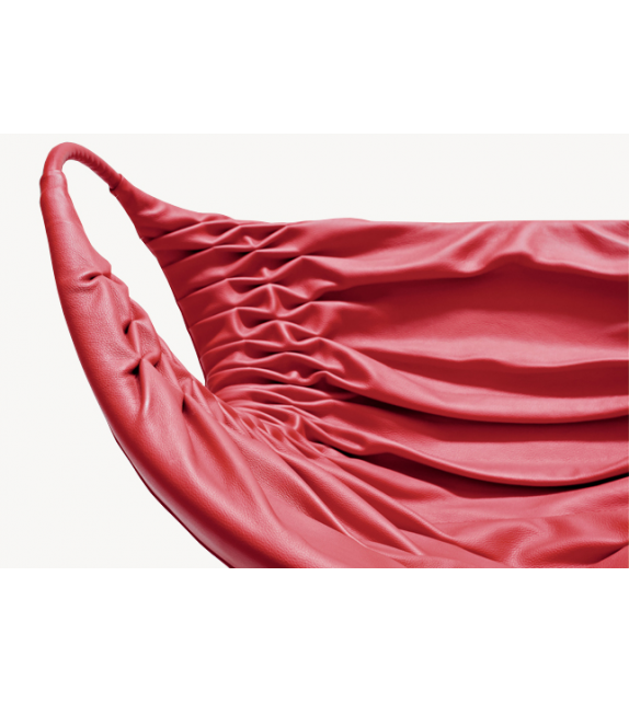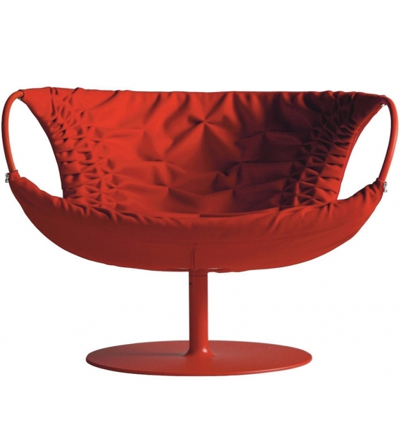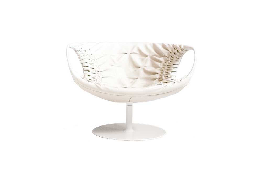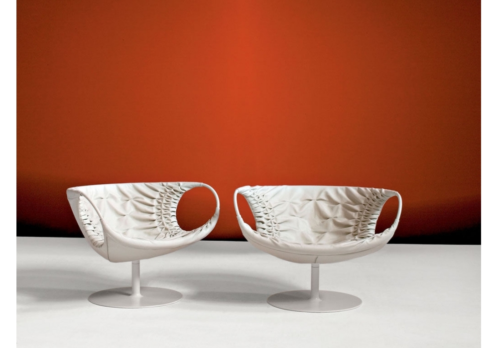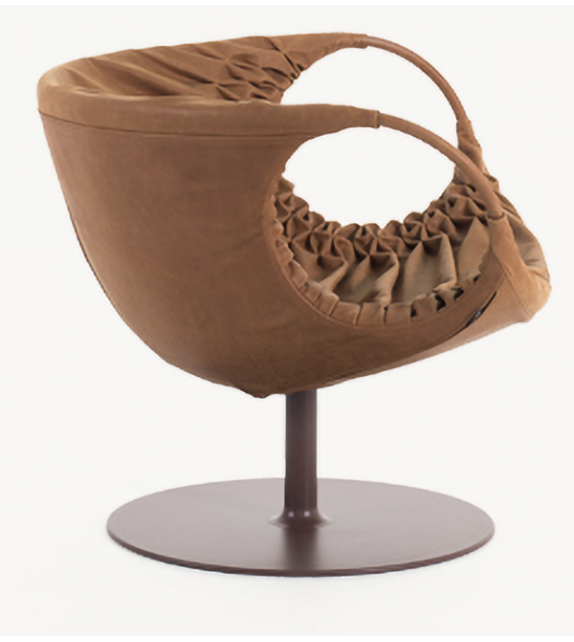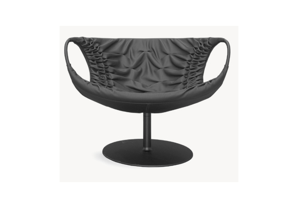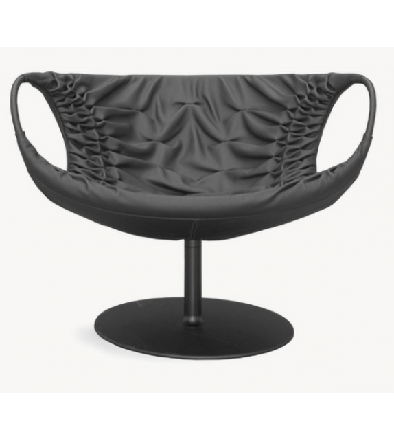 Smock conçu par Patricia Urquiola pour Moroso est un fauteuil avec assise en polyuréthane expansé à froid avec structure interne en acier. Accoudoirs en acier recouverts de cuir dans la même finition que le fauteuil. Base pivotante en acier thermolaqué en différentes finitions.