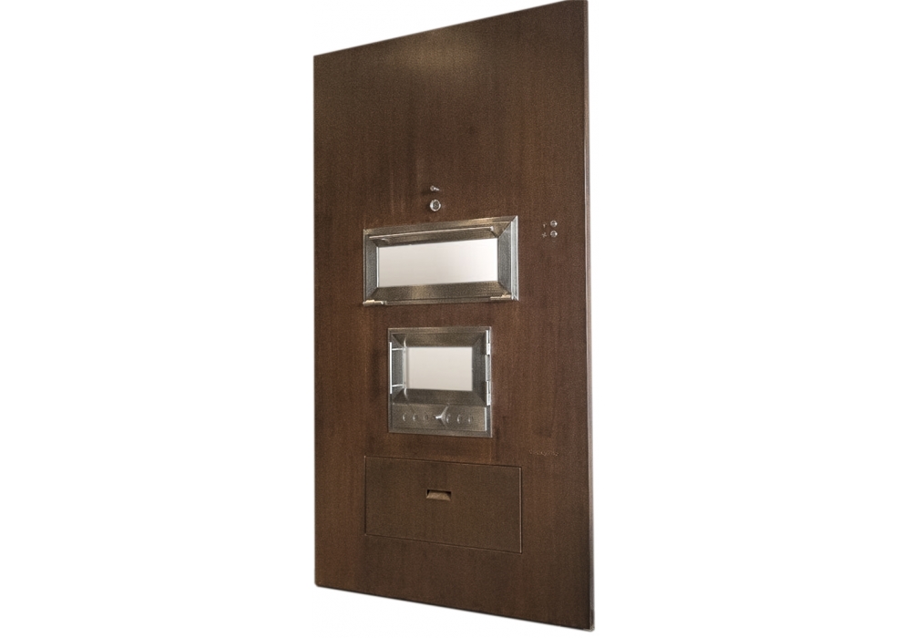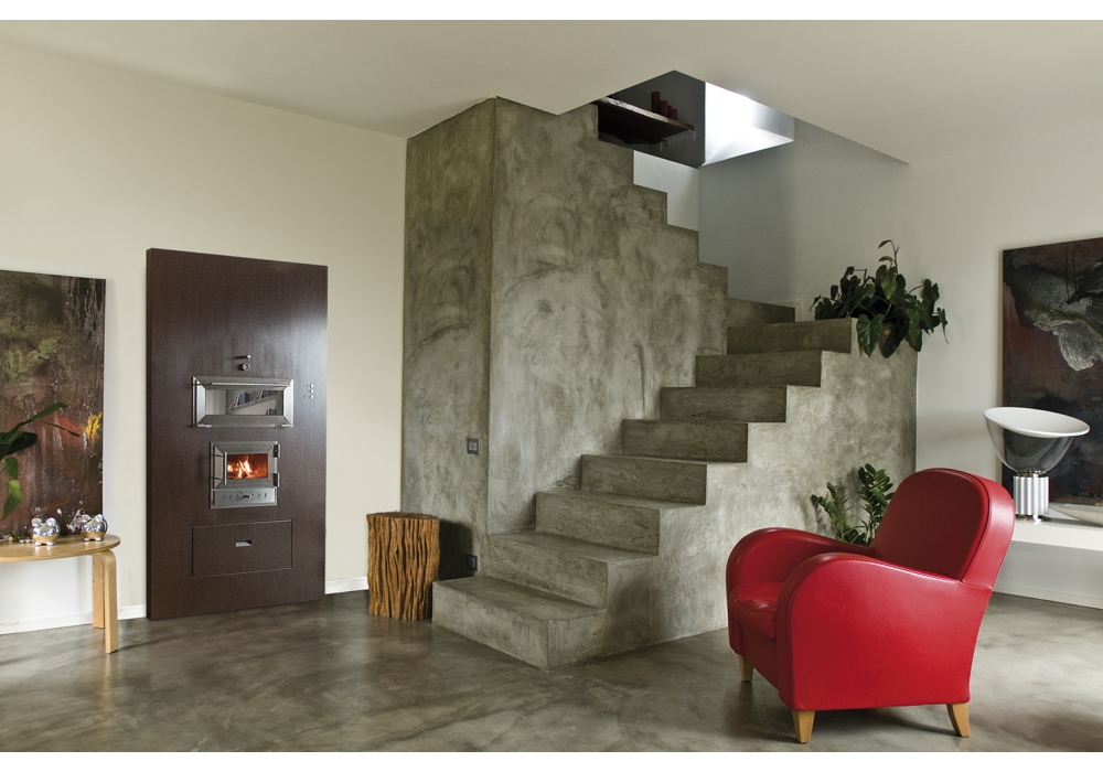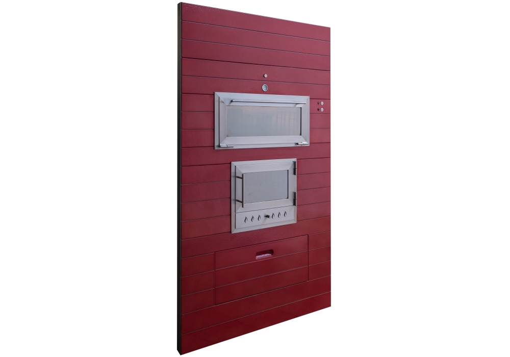 Le revêtement est disponible en pierre de lave ou Corten dans différentes couleurs personnalisées, combinée avec une finition en acier inoxydable.