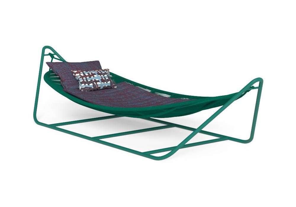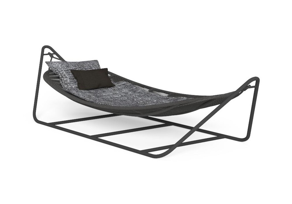 Panama conçu par Ludovica et Roberto Palomba pour Talenti est un hamac avec structure en aluminium et corde nautique synthétique disponible en différentes couleurs, coussin en différentes finitions.