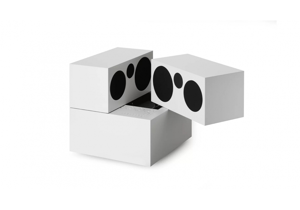 Totem conçue par Mario Bellini pour Brionvega est une radio en bois MDF, laquée et polie à la main. Elle englobe la recherche de formes primaires, comme le simple volume d'un cube et qui conduit à la modularité et à la composabilité, masquant les fonctions d'une Hi-Fi.