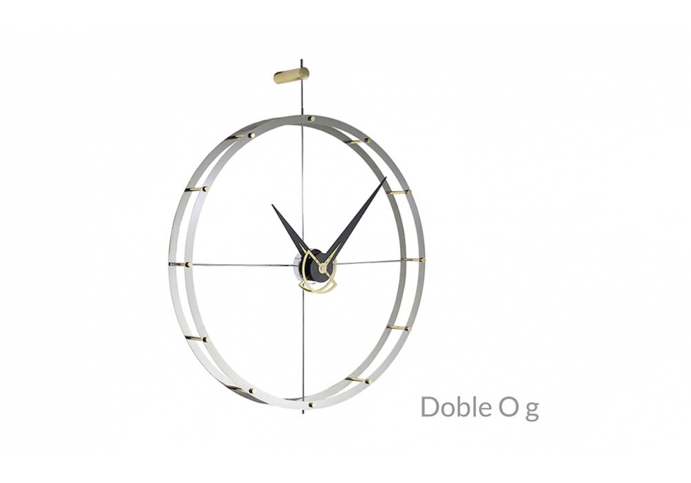 Doble O conçue et produite par Nomon est une horloge avec anneaux en acier ou bois teinté wengé, aiguilles et détails en différentes finitions.