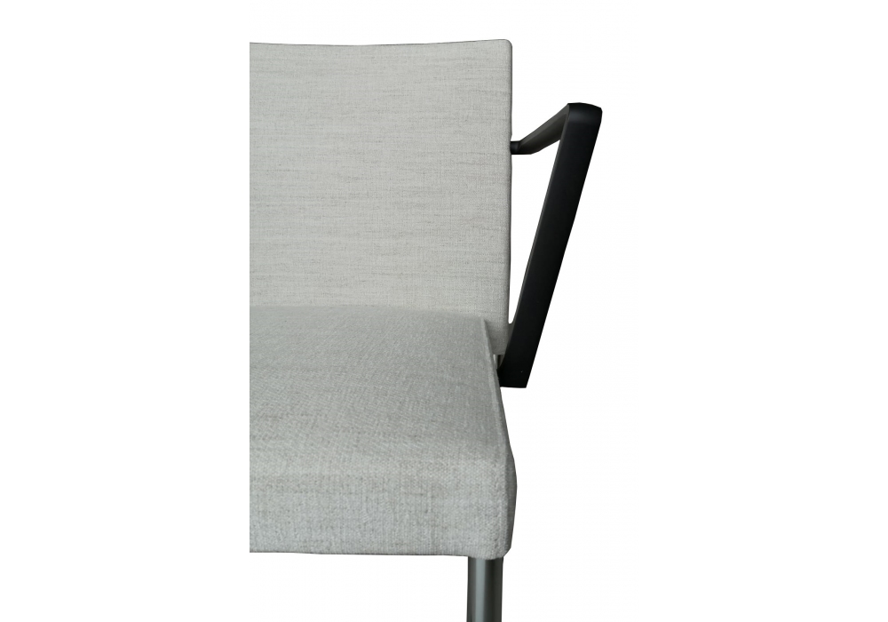 Jason Lite conçue par Eoos pour Walter Knoll est une chaise avec accoudoirs noirs et base chromée brillant. Revêtement en tissu Garbo, 7737 Pearl. Patins en feutre pour les planchers en bois.