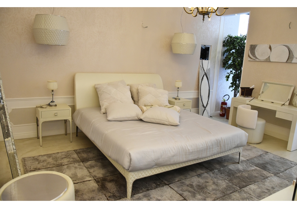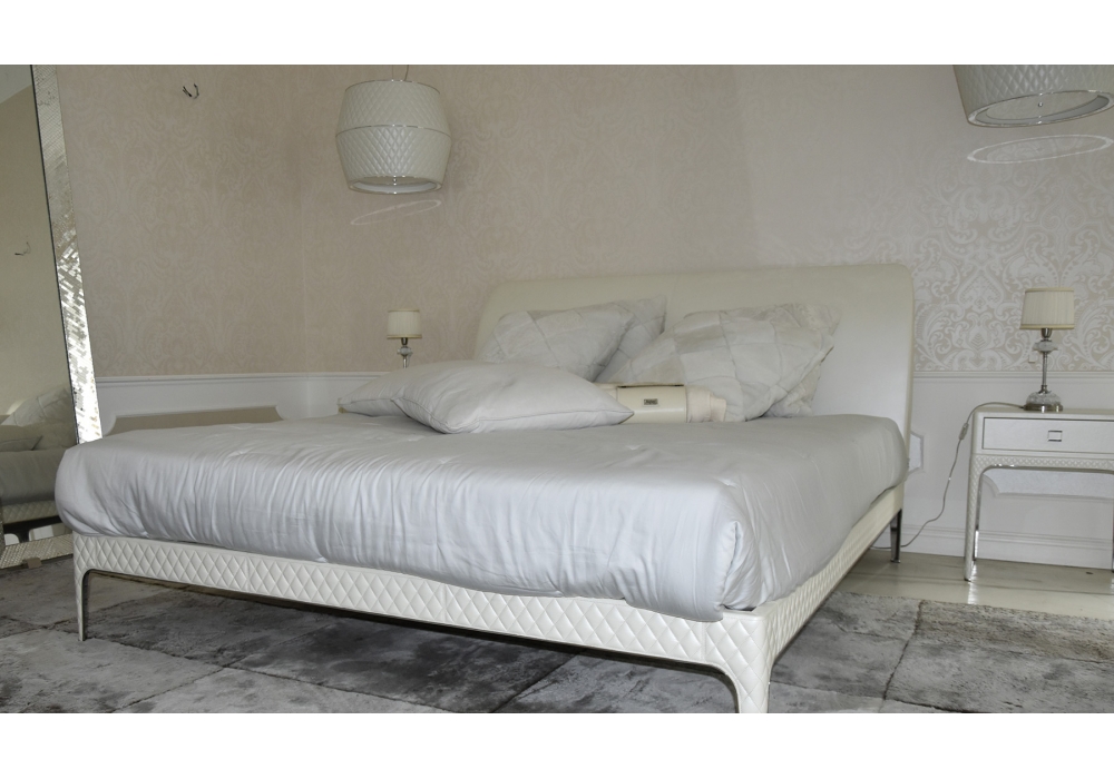 Philadelphia conçue par Rugiano est une suspension avec revêtement en cuir capitonnè P19, avec détails chromés.
