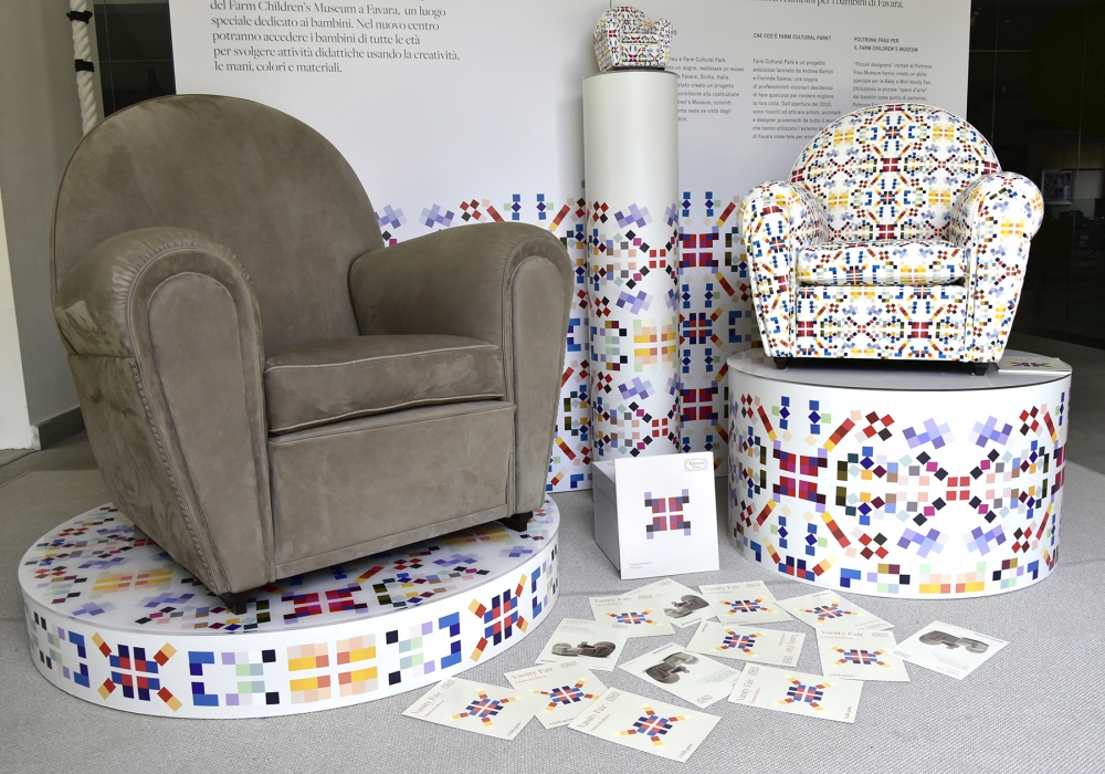Baby Vanity Fair conçu pour Poltrona Frau est un fauteuil pour enfants en édition limitée revêtue en tissu SOU. Avec plaque en métal.