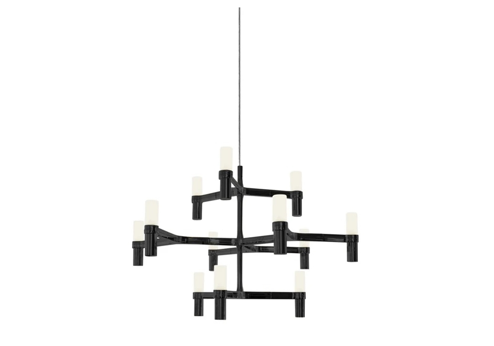 Crown Minor conçu par Jehs+Laub pour Nemo est un chandelier réalisé avec une structure modulaire en aluminium moulé. Diffuseurs en verre satiné.