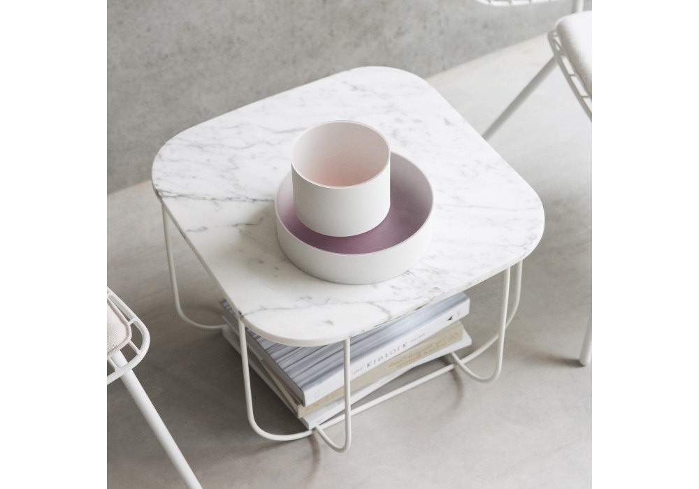Cage conçue par Form Us With Love pour Menu est une belle table basse avec structure en acier et plateau en bois de chêne ou en marbre.