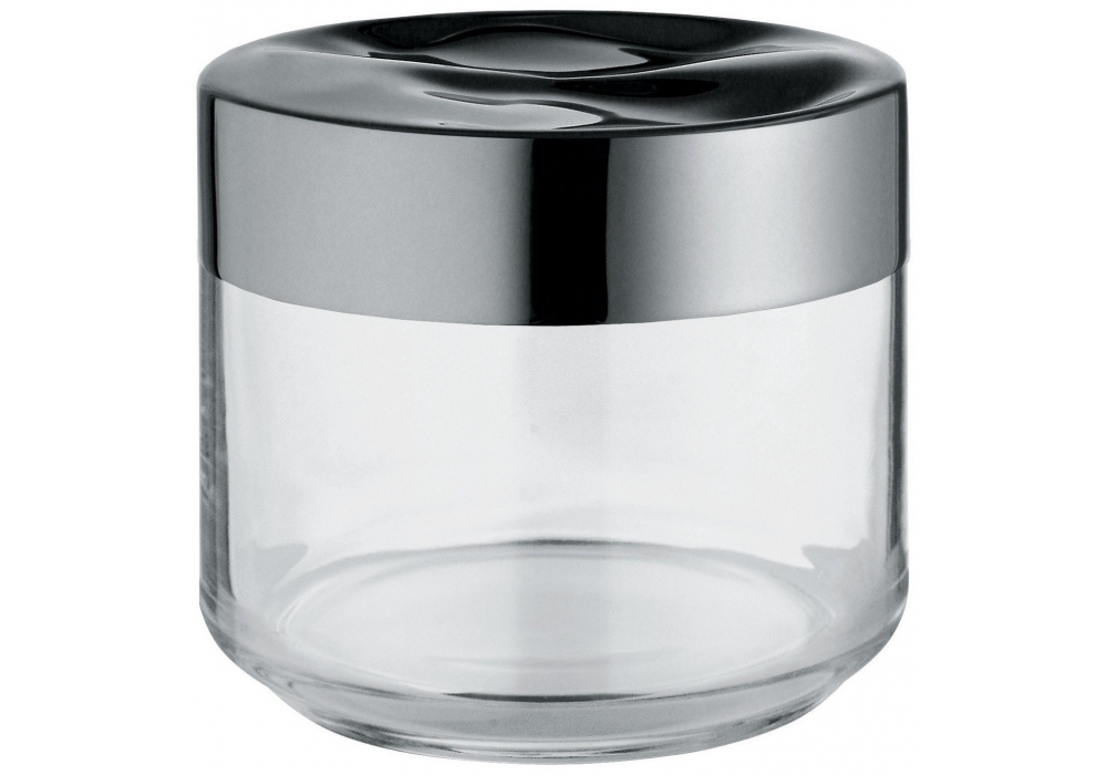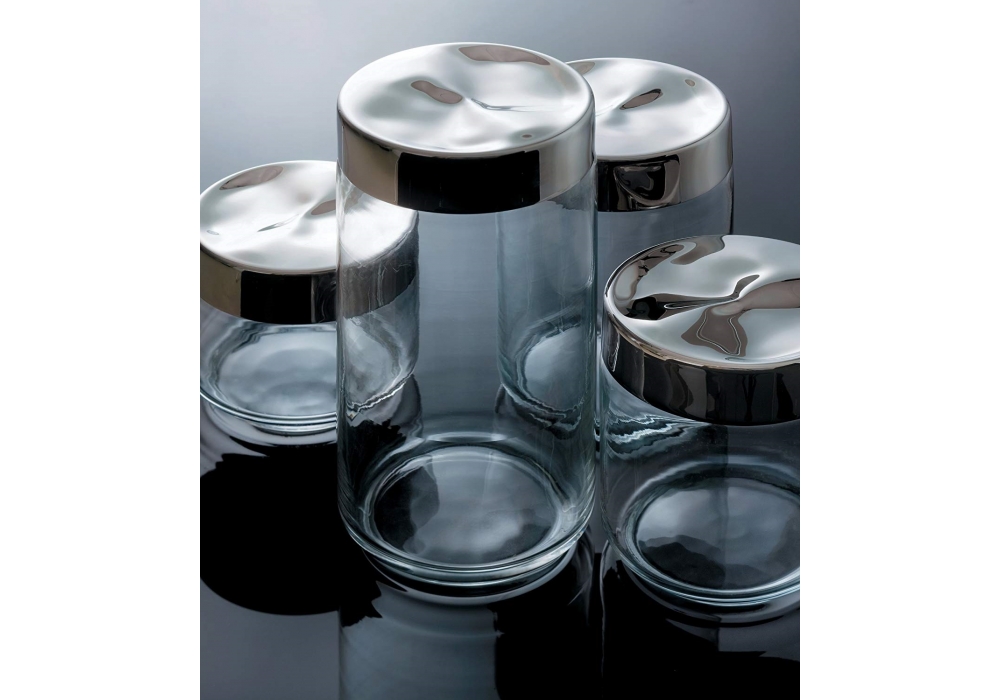 Julieta conçue par Lluís Clotet pour Alessi est une boîte de cuisine en verre avec couvercle en acier inox 18/10 brillant.