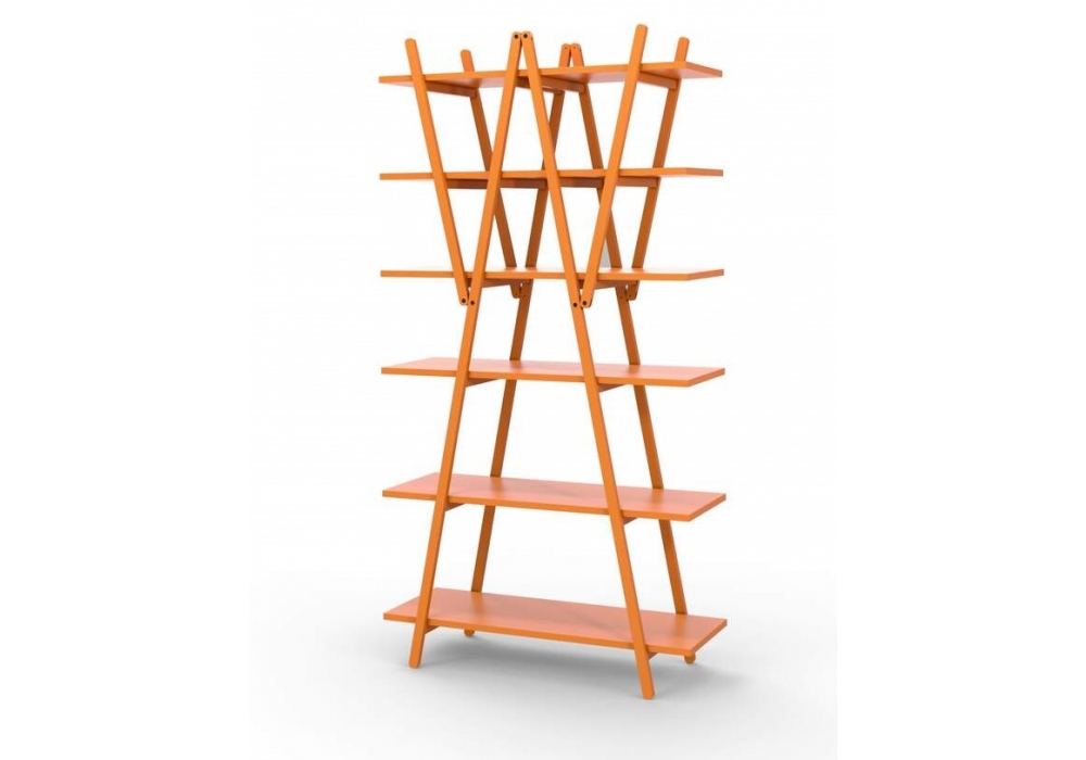 114 Nuvola Rossa conçue par Vico Magistretti pour Cassina est une bibliothèque pliante. Les quatre étagères centrales sont amovibles.