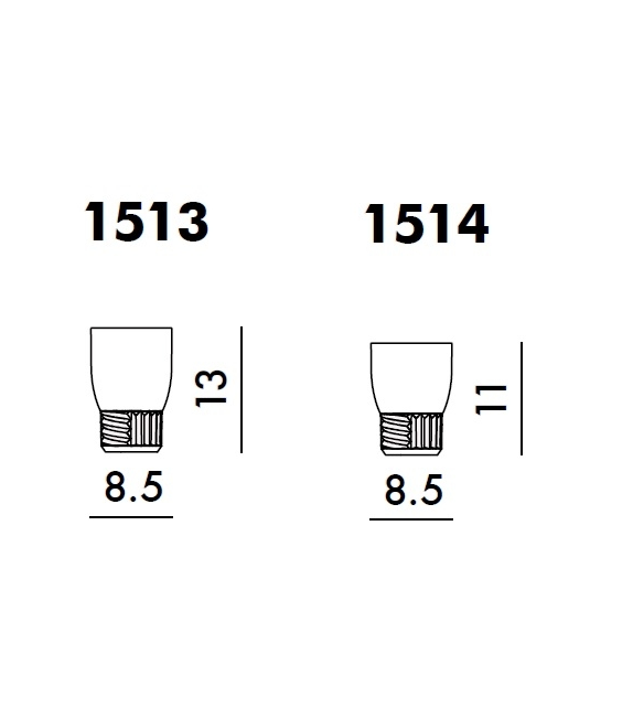 | Dimensions | ⌀ 8,5 x H 11 cm; ⌀ 8,5 x H 13 cm. |