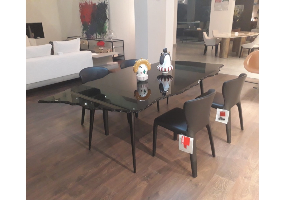 Egeo conçue par Jacopo Foggini pour Edra est une table réalisée avec 4 pieds et plateau en verre avec finition noir.