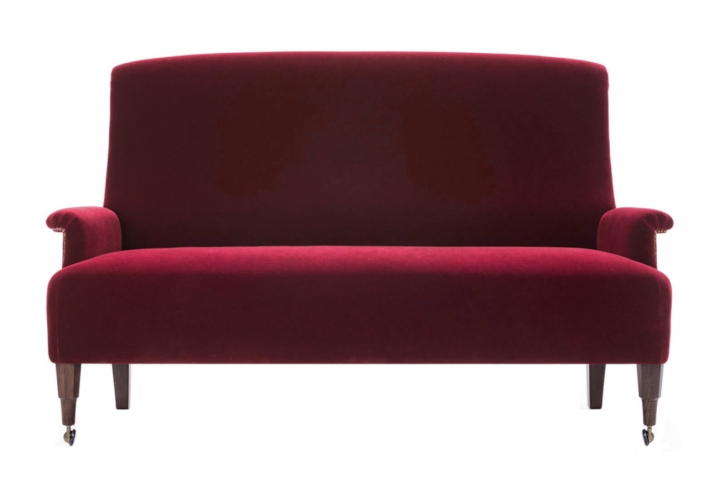 Abcd conçu par Luigi Caccia Dominioni pour Azucena est un canapé réalisé avec un revêtement en velours Mohair bordeaux. Pieds teints en noyer et roues avant et goujons avec finition bronze.